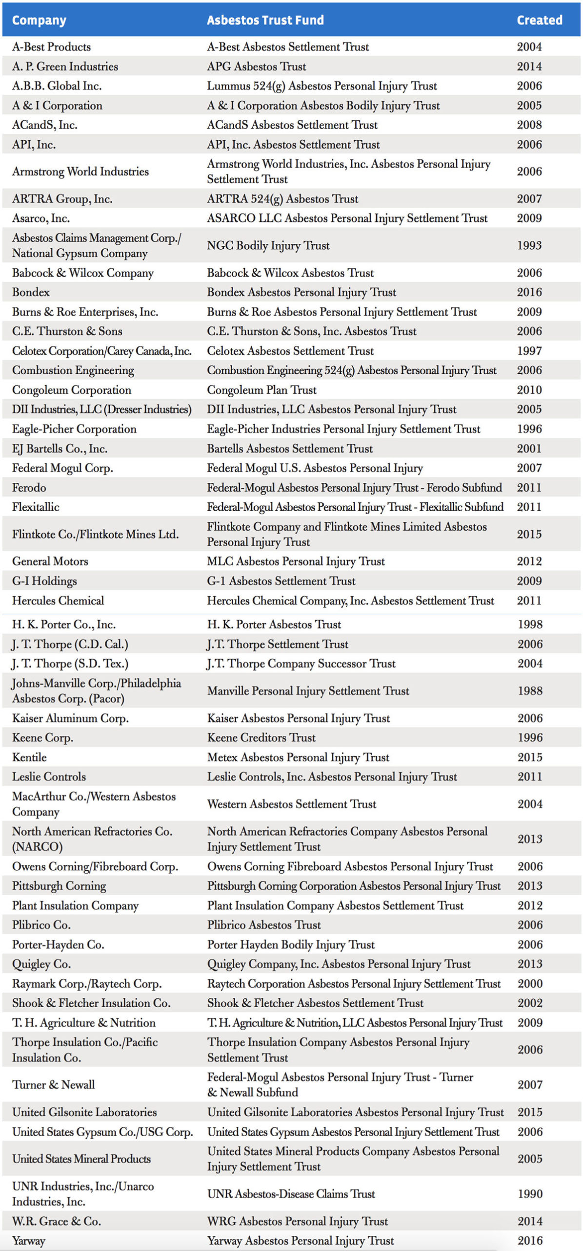 List Of Asbestos Bankruptcy Personal Injury Trust Funds Settlement For Mesothelioma Mesothelioma 2020
